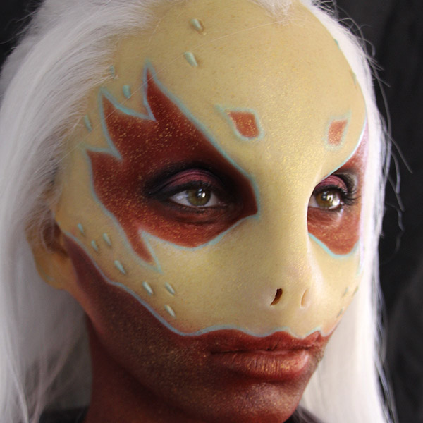 From Star Trek: Picard, this makeup was one of many background characters we created for season one. Rhomsew consists of a 3 piece silicone prosthetic makeup with a custom a lace wig. Original design by Neville Page.