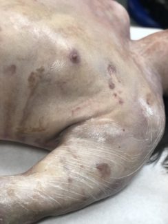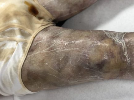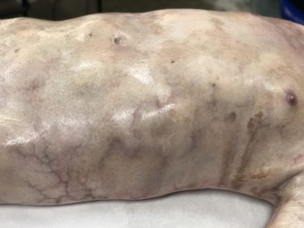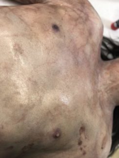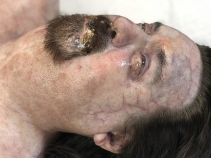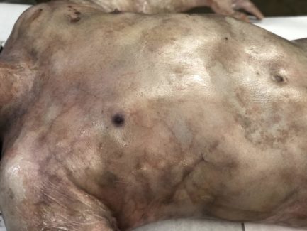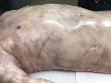 For an episode of 9-1-1 we were tasked with creating a silicone full body in the middle of its decomposition – extremely bloated. An internal inflatable bladder was created so that the body could be punctured and gasses let out on camera.