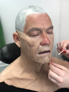 For the series finale of The Affair we had the opportunity to create old age looks for a few of the cast members. Here, Dominic West is aged to 80 years old, in an 8 piece silicone prosthetic makeup with a lace wig, brows, and contact lenses.