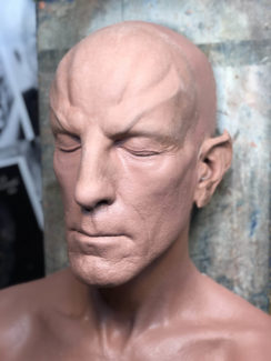 This is a Romulan we created for Star Trek: Picard, . Silicone forehead/nose bridge prosthetic, along with ears. Original design by Neville Page