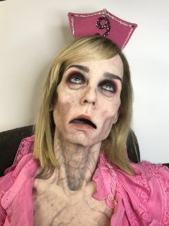 Created for Scream Queens season 2, channel number 9’s emaciated corpse called for a full silicone likeness body to be created of her as a drained and emaciated looking dead corpse. On set dressings and handling by Mike Mekash.