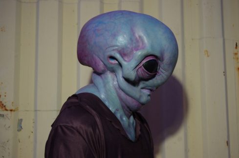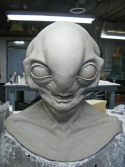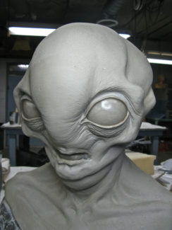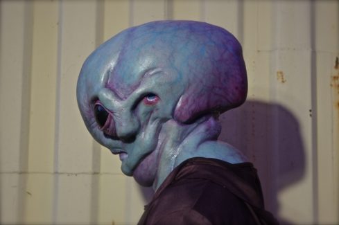 Full head silicone prosthetics were created here for an Alien design, This concept was created to show what could be achieved with prosthetics and then enhanced digitally later for eye manipulations.