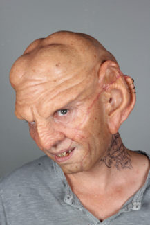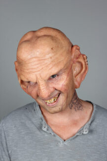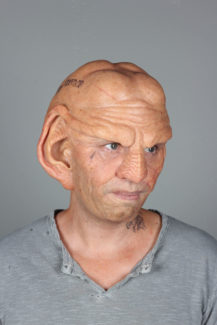 For Star Trek Picard season 3, one of our villains is a Ferengi named Sneed. The reimagining of this character was a collaboration between us and creature designer Neville Page, with our goal and approach here to bring a realistic, updated look to the Ferengi aliens we know. This makeup consisted of 6 overlapping silicone prosthetics, with full dentures and tattoo application to complete the look.